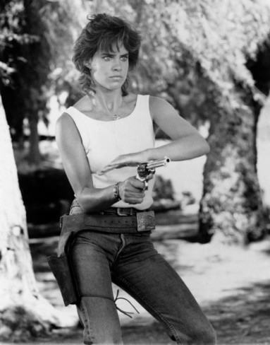 Meanwhile, one of mini-genre legend Catherine Mary Stewart’s (Night of the Comet, Nightflyers, and Psychic) first major roles was playing compassionate nurse Kayla Brady on Days. She, graciously, allowed me to interview her at a Horror Hound convention in March of 2010. In an unusual turn of events (yeah, right!), the paper I interviewed her for folded and I re-worked the piece for the Indianapolis Examiner website. Since, I am pretty certain no one saw it (except for those I was holding captive at the time); I am including it here as a pink and chewy postscript. Don’t you just love a beautiful, gun wielding babe?!