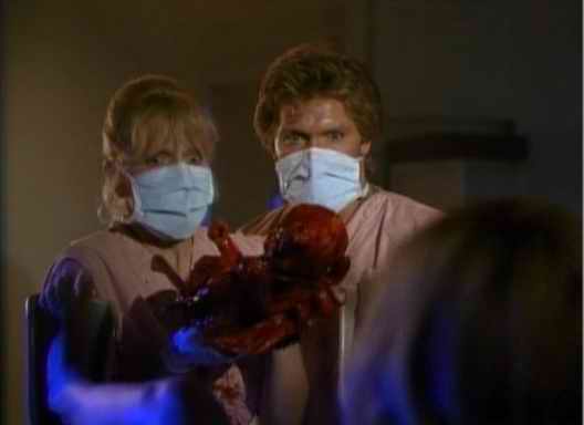 A paper route and McDonalds. Those were Big Gay Horror Fan’s first real jobs. Lucky others such as David Mason Daniels (Capital, One Dark Night), Karrie Emerson (Edge of Night, Young and the Restless, Evils of the Night, Chopping Mall), Kelli Maroney (Ryan’s Hope, Night of the Comet, Chopping Mall), Tracy Bregman (Days of Our Lives, Young and the Restless, Happy Birthday to Me), Brian Matthews (Young and the Restless, Santa Barbara, The Burning) Eileen Davidson (Young and the Restless, The House on Sorority Row) and Deanna Robbins (Young and the Restless, Final Exam) to name just a few, began their careers with first jobs on soap operas and horror films. (Hate them!) This is one of the reasons that daytime dramas and terror flicks are always so closely linked in my mind. Although, the frequent afternoon tales of ghostly apparitions, underworld cities, freezing death rays, clones, evil twins and peeping tom like psychos might have something to do with it, as well. In fact, in the late 90’s, (long gone sudser) Sunset Beach even featured a slasher film plot line where all their young leads wound up on a deserted island stalked by a wild killer. One of the valued victims in that bloody scenario was perennial nice guy Mark, played by major yummy Nick Stabile, who went on to star in Bride of Chucky.