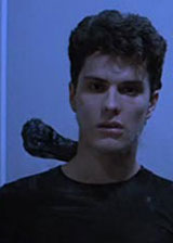 Frank Hennenlotter’s Brain Damage not only stars handsome (soon to be soap stud) Rick Hearst (Herbst) but also features a scene in a transient hotel with specific gay overtones. As Hearst spirals quickly downward, due to the brain sucking mechanisms of a creature named Elmer, he encounters a naked muscle man showering in the communal area of the desolate hotel he is hiding out in. The bicep ridden stud tells a nervous Hearst that he has nothing fear from him, obviously referencing that the area is a cruising ground for men – and, eventually, for lovers of terror, as well.