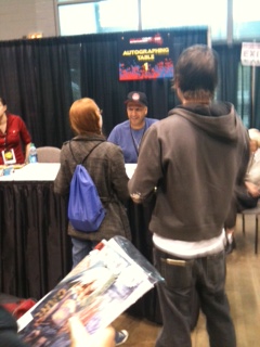 I hit the Tom Morello signing after leaving Lauren’s bright genius. This raging nightwatchman had a pretty great handshake and an awesome smile – although, I wish I’d asked him about working with queer rock legend Brian Grillo (Extra Fancy) in early band, Lock Up. Still, I touched the hand of a man who appeared in a cameo in Iron Man, so all is well in the land of groovy fandom.