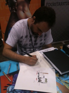 Of course, there were tons of amazing major league (Marvel’s Jeph Loeb, DC’s Gail Simone) and independent (Dirk Manning from theNightmare World series; James Murray from Bride of Prometheon Classic Horror Comics) comic creators, but my happiest moment was when electic Tim Seeley drew me a quick sketch of one of my favorite characters, Pooch, from one of my favorite comics, Hack/Slash. A modern day slasher film come to life (with emotionally true and life damaged characters), Hack/Slash is definitely worth taking a stab at (if – gasp – you haven’t already) and you can keep up the pulse at www.hackslashinc.com .
