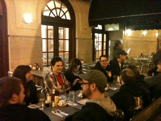 Next, I got to appear on an awesome WildClaw Theater panel with John Pata and the crew of survivalist horror film, Dead Weight (www.deadweightmovie.blogspot.com). Here is a bunch of them at dinner, afterwards. This film has been getting great press and a BGHF review should be forthcoming, as well.
