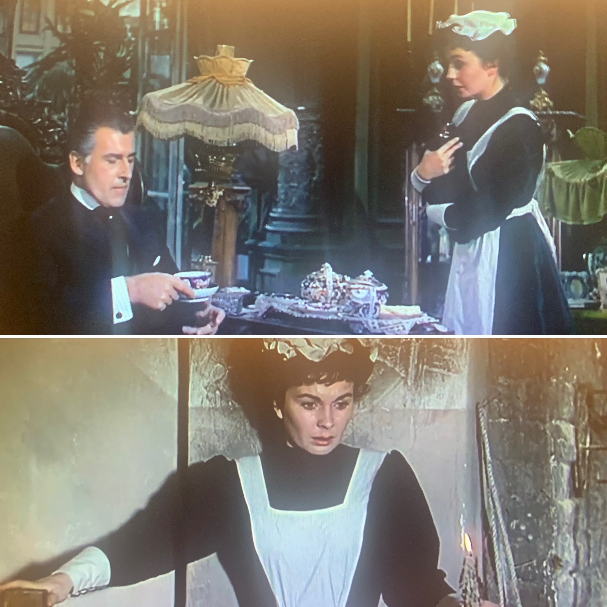 As the coolly calculating Lily Watkins in 1957’s Footsteps in the Fog, the crisp Jean Simmons uses her refined speaking tone and calm demeanor to create a convincing portrait of a woman blindly motivated by her obsessions.
