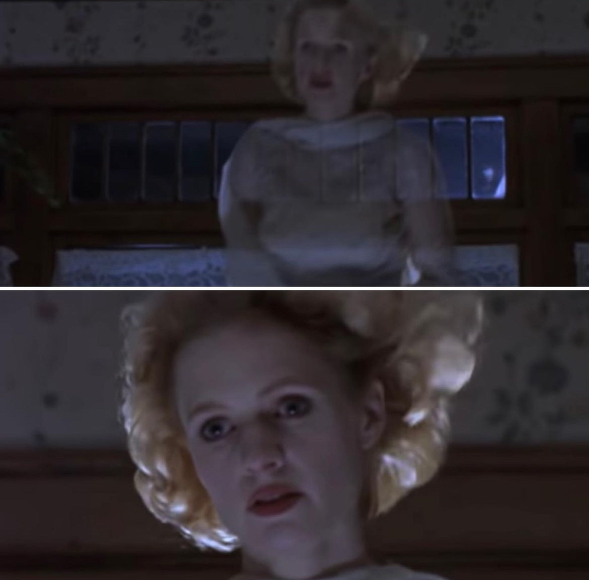 Of course, as I age, nostalgia is ever nipping at my heels and, in a flush of newfound determination, I recently found her segment online. As you can see from the photos alone, she played her character, an apparition warning a family against impending dangers, with an ethereal potence. Of course, my viewing was amplified by my experience with her in my theater salad days and my sincere gratitude for having lived a life surrounded by so many uniquely creative individuals. But you can judge for yourself at….