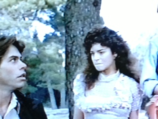 Similarly, in the 1984 lensed/1985 released Out of Control, horror seductress Betsy Russell (the Saw series, Cheerleader Camp, Camp Fear) and her friends (played by such pop culture and genre regulars as Sherilyn Fenn, Claudia Udy, Martin Hewitt and Jim Youngs) deal with their boredom, while marooned on a deserted island, by slamming back illegal bottles of vodka and playing strip spin the bottle! Soon, though, a bunch of unshaven bandits descend upon them, effectively ending our teens’ free-for-all fun and sending them down the path of Straw Dogs style vengeance making.
