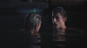 Not only do we get some comic nudity from eclectic plus size actor Adrian Martinez (Kick Ass), but hunky Jean-Luc Bilodeau’s (Trick or Treat) Josh gives us some murky rump action in a skinny dipping sequence and then delivers the full-on posterior goods in this ferocious fin flick’s O’Connell homage.