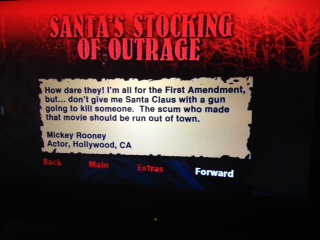 As much as it embraces the expected tropes, though, the film is done in a bit by its pacing. Many scenes feature the cast sitting around, chatting, or wandering, tentatively, throughout the house or across the property. There are some talented, but less than magnetic performers, many of whom would never work again, on display here, as well. But some of this oddness works in the piece’s favor and one can even grow affectionate over seemingly random incidents like the visit of an antagonistic neighborhood woman, who disappears after her first scene and has no relevance to the plot whatsoever. Those who love the idea of festive figures in compromising positions will find much to enjoy here, as well, as the Santa(s) eradicate with stealth, if not originality.