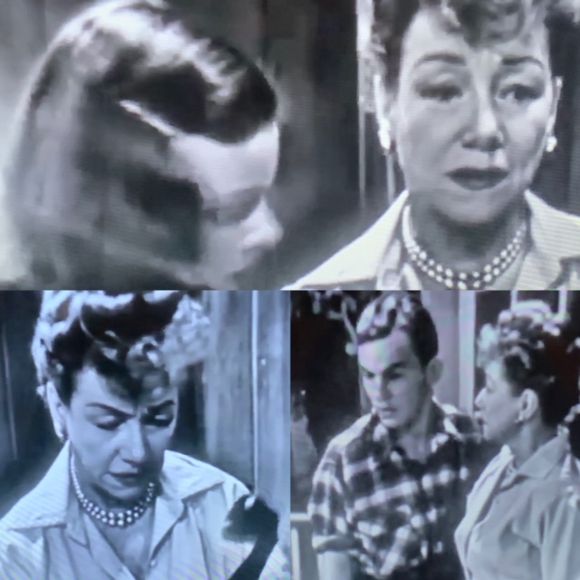 (Photos: Above, top: Street of Women cover art with Gateson reacting imperviously in the lower right. Above, bottom: Gateson bringing a somber dignity to Conrad Janis” threats on Suspense.)