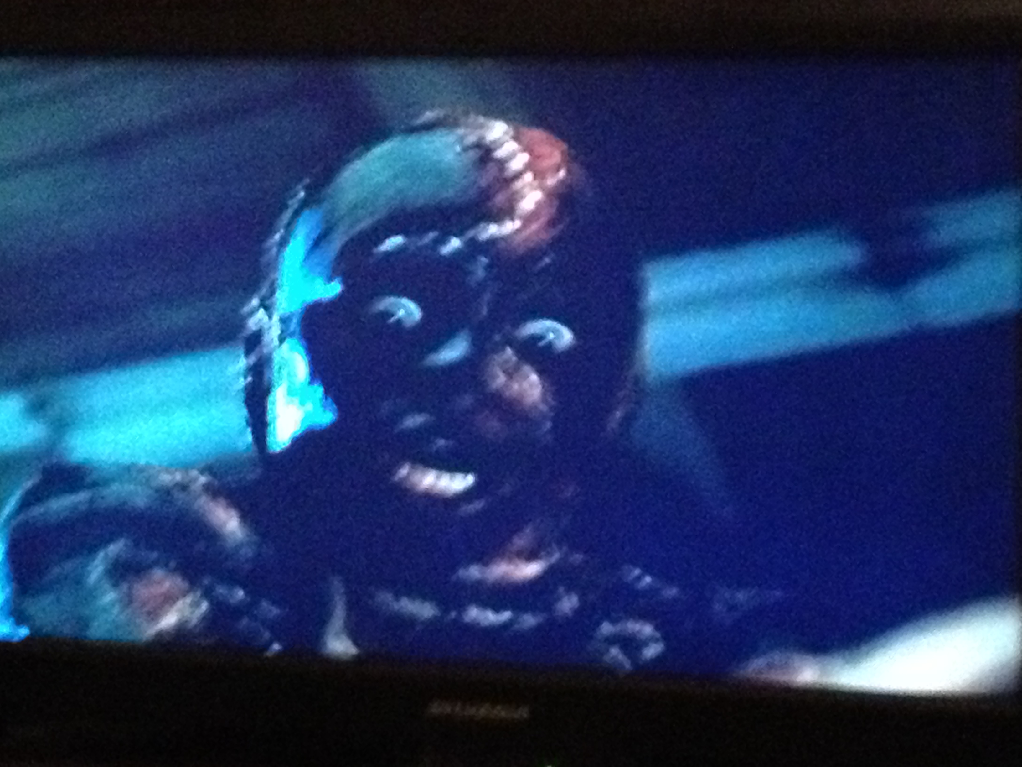 Fourteen years later in his follow-up, When A Stranger Calls Back (1993), Walton executes a genius surprise scare. The murderous master in this one, William Landis (the chameleon-like Gene Lythgow) actually blends into the environment of the apartment of the film’s female lead for the final showdown. Stripped down and covered in paint, Lythgow flashes his muscular buttocks, several times, as his maniacal character meets his justified end.